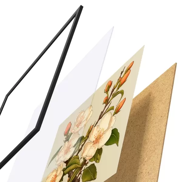 Plakat składa się z ramy, pleksi, wydrukowanego obrazu i podkładu z płyty wiórowej. Plakat można natychmiast zawiesić na ścianie dzięki uchwytom z tyłu.