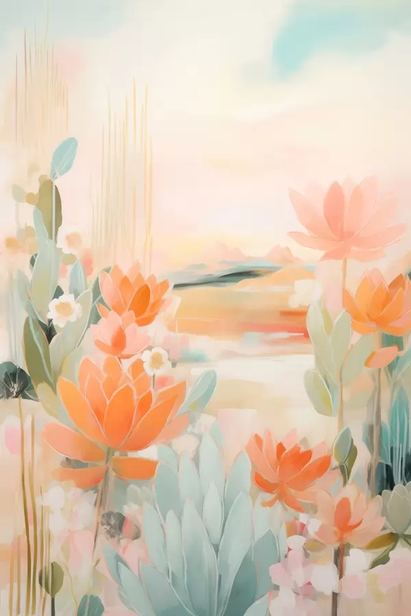 Poster Kwiatowy pejzaż w odcieniach różu i błękitu w nowoczesnym stylu malarskim Nr f46931