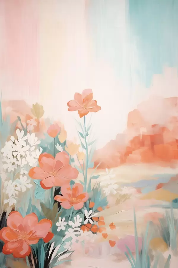 Poster Abstrakcyjny kwiatowy krajobraz w różowo-niebieskiej palecie barw Nr f46932