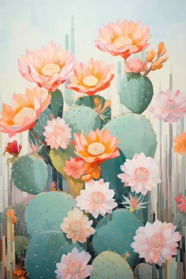 Poster Ogród kwiatów kaktusa w delikatnej pastelowej palecie barw w stylu ilustracyjnym Nr f46935