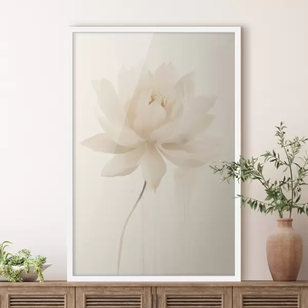 Poster Delikatny biały lotos na jasnym tle w minimalistycznym stylu Nr f46936
