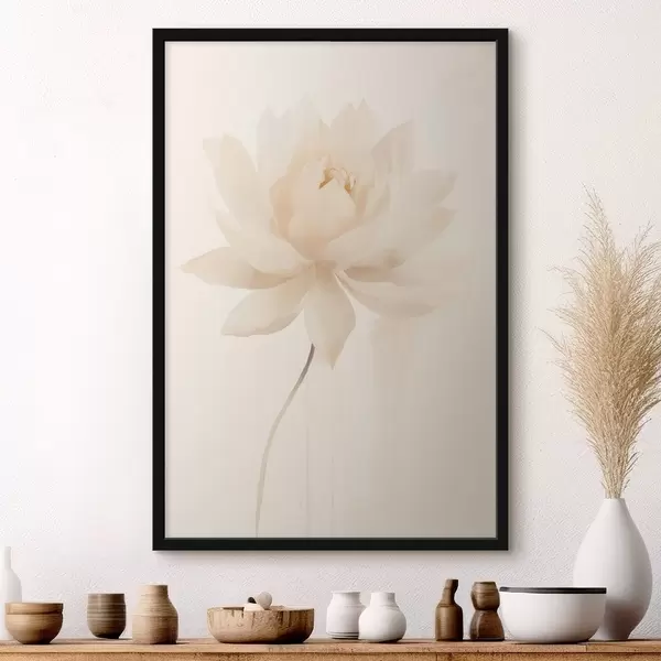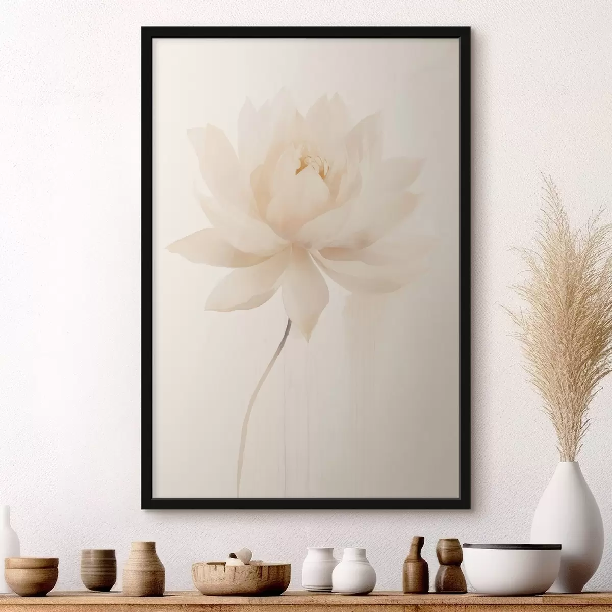 Plakat Delikatny biały lotos na jasnym tle w minimalistycznym stylu f46936