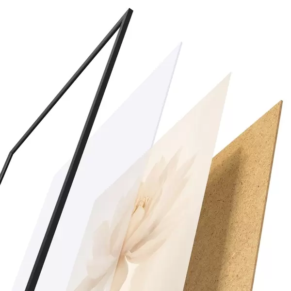 Plakat składa się z ramy, pleksi, wydrukowanego obrazu i podkładu z płyty wiórowej. Plakat można natychmiast zawiesić na ścianie dzięki uchwytom z tyłu.
