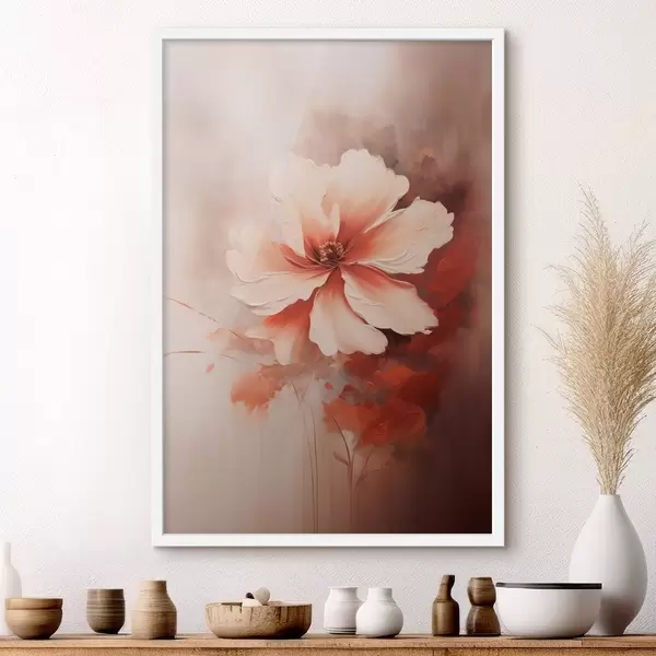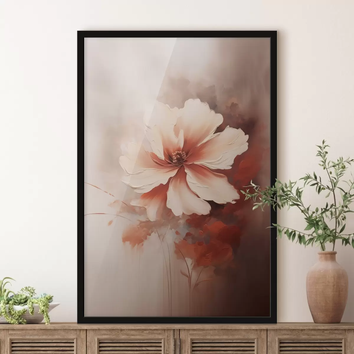 Poster Delikatny biały kwiat koralowca na zamazanym tle w stylu malarstwa olejnego Nr f46938