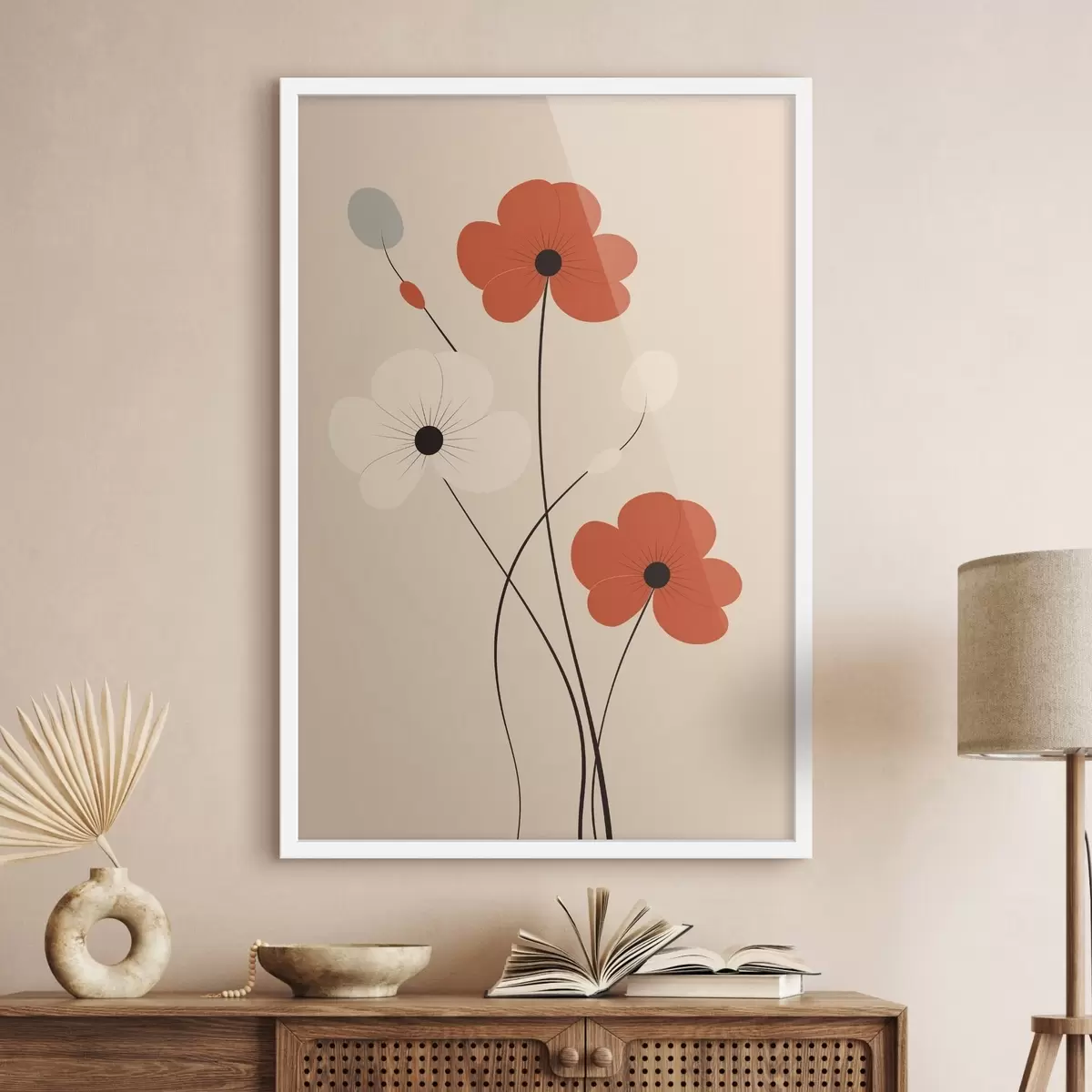 Poster Abstrakcyjna kompozycja z cienkimi łodygami i prostymi kształtami w minimalistycznym stylu Nr f46943