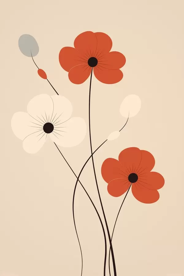 Poster Abstrakcyjna kompozycja z cienkimi łodygami i prostymi kształtami w minimalistycznym stylu Nr f46943