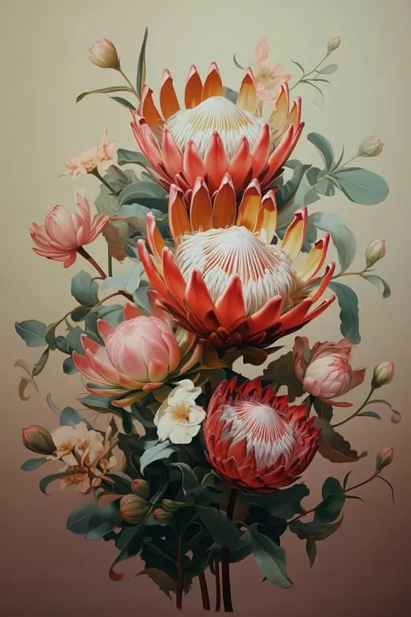Poster Kompozycja z dużymi proteami w nowoczesnym stylu cyfrowej ilustracji malarskiej Nr f46947