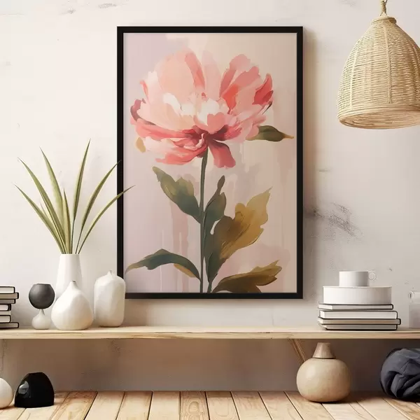 Plakat Piwonia o koralowo-różowych płatkach w stylu ilustracji sztuki nowoczesnej f46948