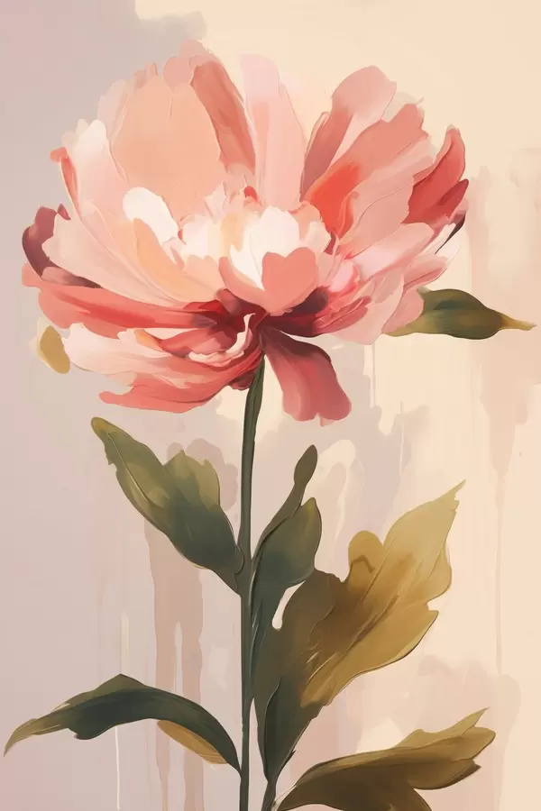 Plakat Piwonia o koralowo-różowych płatkach w stylu ilustracji sztuki nowoczesnej f46948