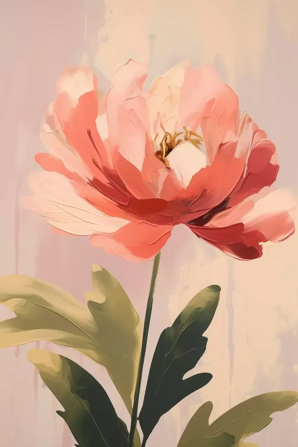 Poster Bujna piwonia na pastelowym tle w stylu ilustracji sztuki współczesnej Nr f46949