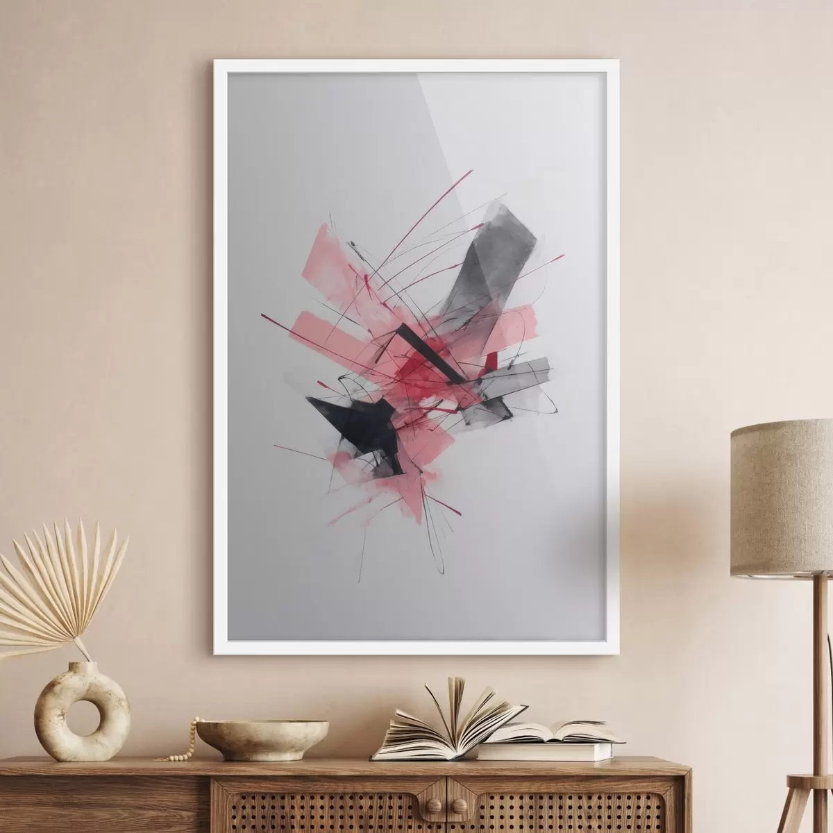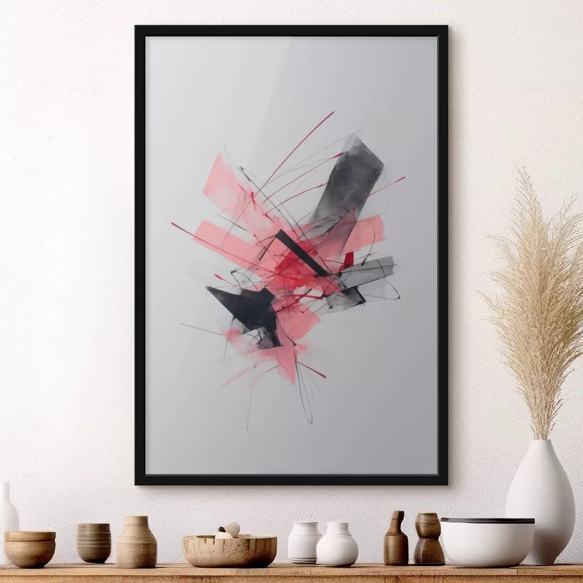 Poster Abstrakcja z różowymi i czarnymi elementami geometrycznymi Nr f46950