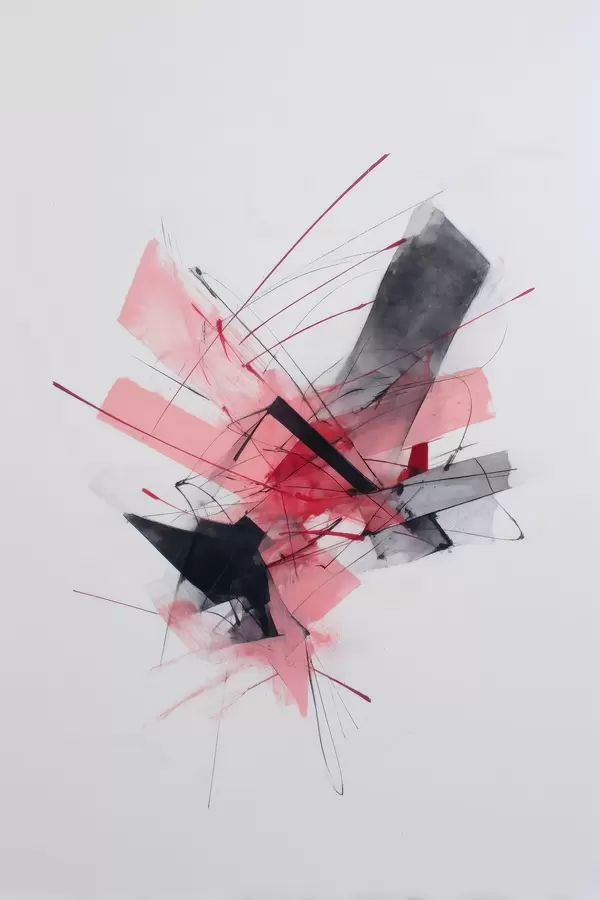 Poster Abstrakcja z różowymi i czarnymi elementami geometrycznymi Nr f46950