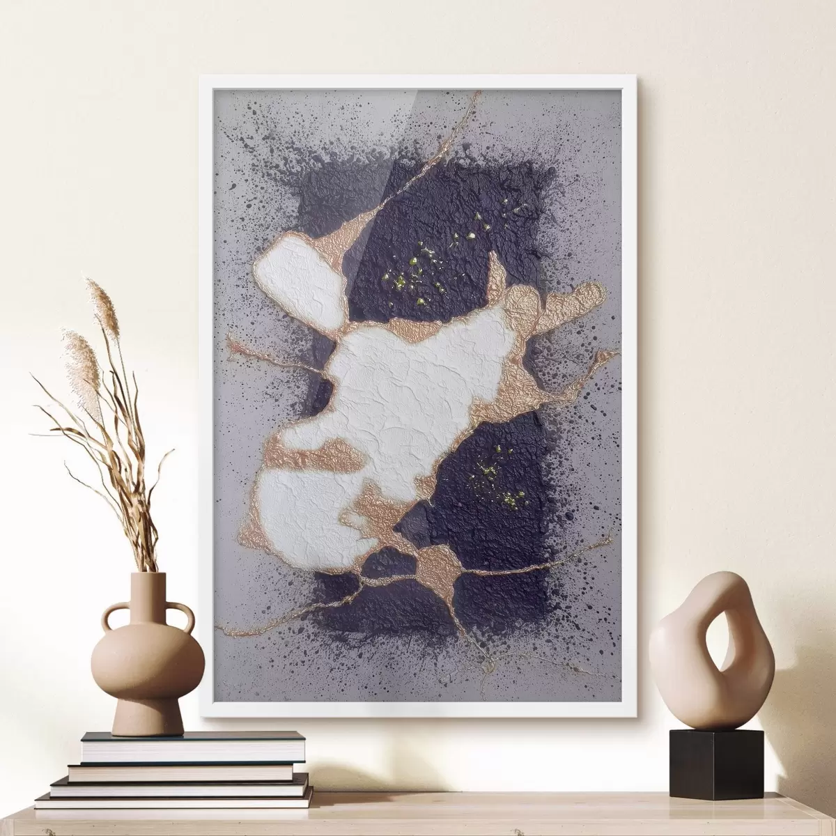 Plakat Abstrakcyjny wzór w odcieniach fioletu i beżu z efektem tekstury przestrzennej f46952