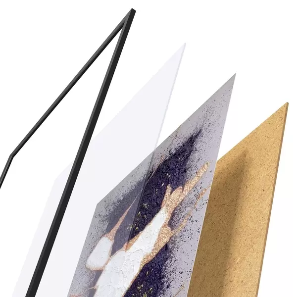 Plakat składa się z ramy, pleksi, wydrukowanego obrazu i podkładu z płyty wiórowej. Plakat można natychmiast zawiesić na ścianie dzięki uchwytom z tyłu.