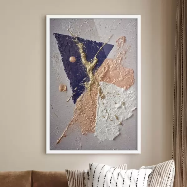 Plakat Abstrakcyjna kompozycja z ciemnoniebieskim trójkątem i reliefowymi pociągnięciami pędzla w stylu malarstwa olejnego f46953