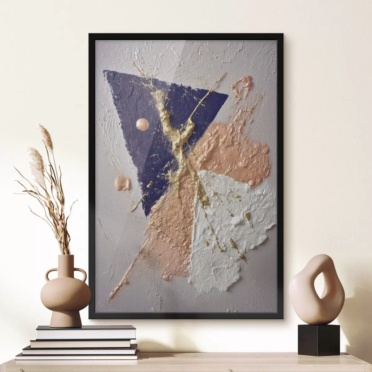 Poster Abstrakcyjna kompozycja z ciemnoniebieskim trójkątem i reliefowymi pociągnięciami pędzla w stylu malarstwa olejnego Nr f46953