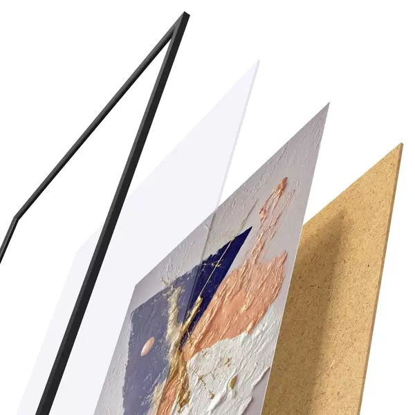 Plakat składa się z ramy, pleksi, wydrukowanego obrazu i podkładu z płyty wiórowej. Plakat można natychmiast zawiesić na ścianie dzięki uchwytom z tyłu.