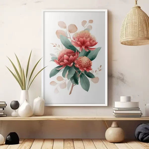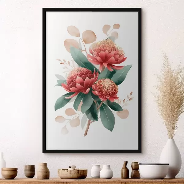 Poster Wyrazisty bukiet protei i ozdobnych liści w stylu ilustracji sztuki nowoczesnej Nr f46954