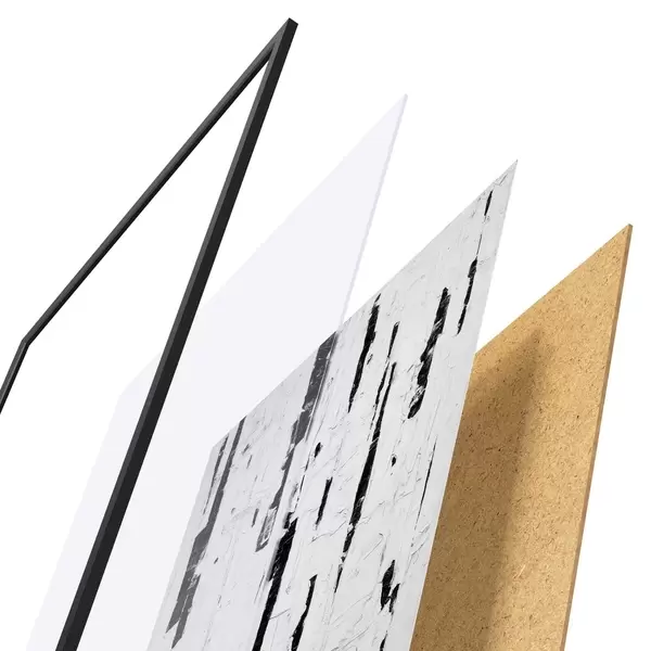 Plakat składa się z ramy, pleksi, wydrukowanego obrazu i podkładu z płyty wiórowej. Plakat można natychmiast zawiesić na ścianie dzięki uchwytom z tyłu.