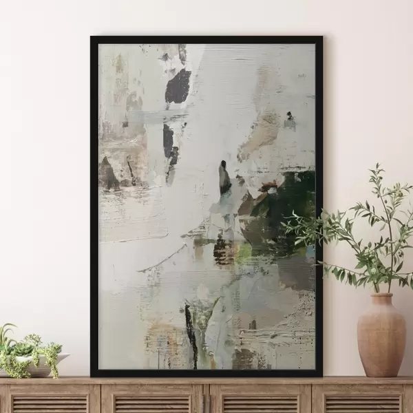 Poster Abstrakcyjna kompozycja w pastelowych odcieniach z ciemnozielonymi akcentami w stylu malarstwa olejnego Nr f46960