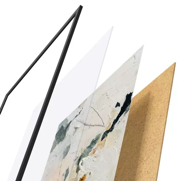 Plakat składa się z ramy, pleksi, wydrukowanego obrazu i podkładu z płyty wiórowej. Plakat można natychmiast zawiesić na ścianie dzięki uchwytom z tyłu.