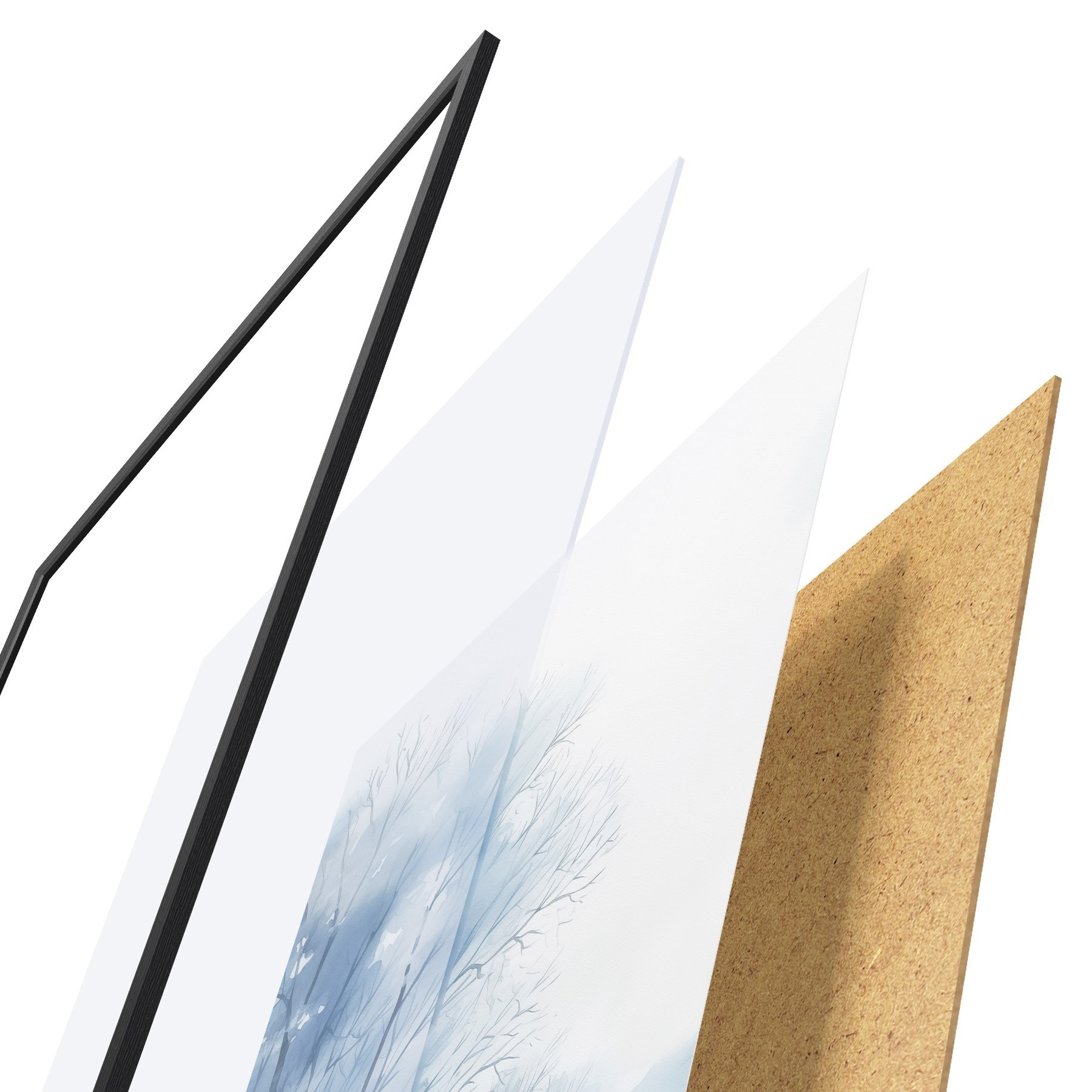 Plakat składa się z ramy, pleksi, wydrukowanego obrazu i podkładu z płyty wiórowej. Plakat można natychmiast zawiesić na ścianie dzięki uchwytom z tyłu.