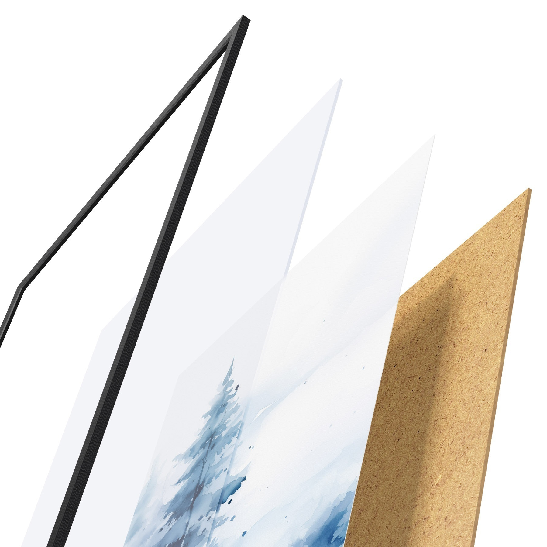 Plakat składa się z ramy, pleksi, wydrukowanego obrazu i podkładu z płyty wiórowej. Plakat można natychmiast zawiesić na ścianie dzięki uchwytom z tyłu.