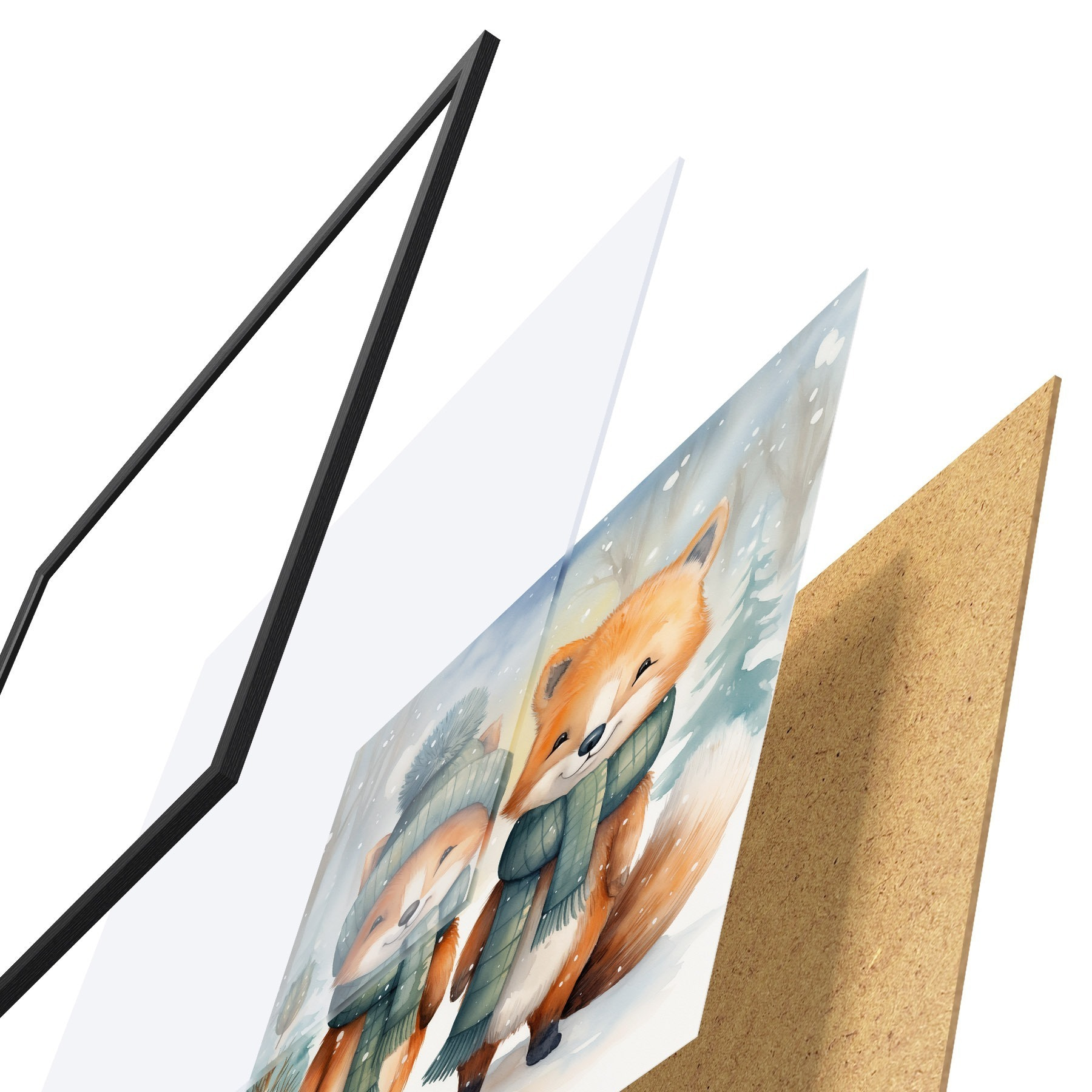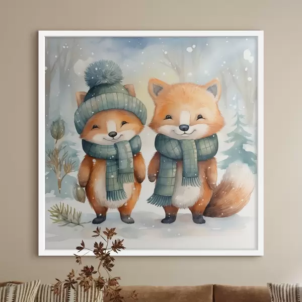 Plakat Dwa małe lisy, imitacja akwareli f46969