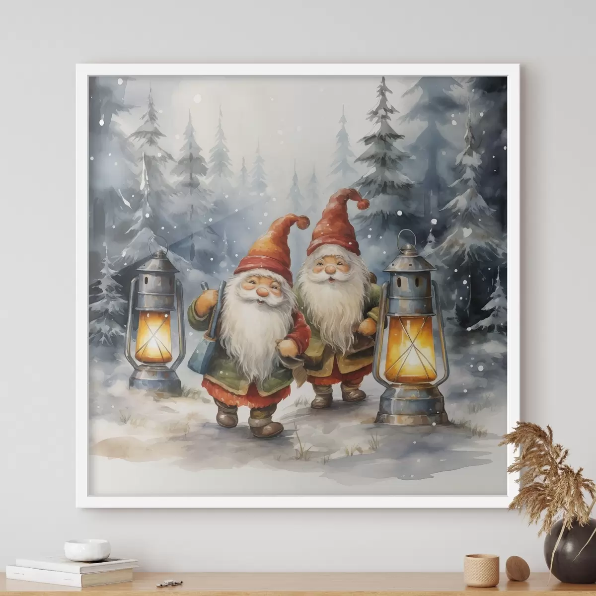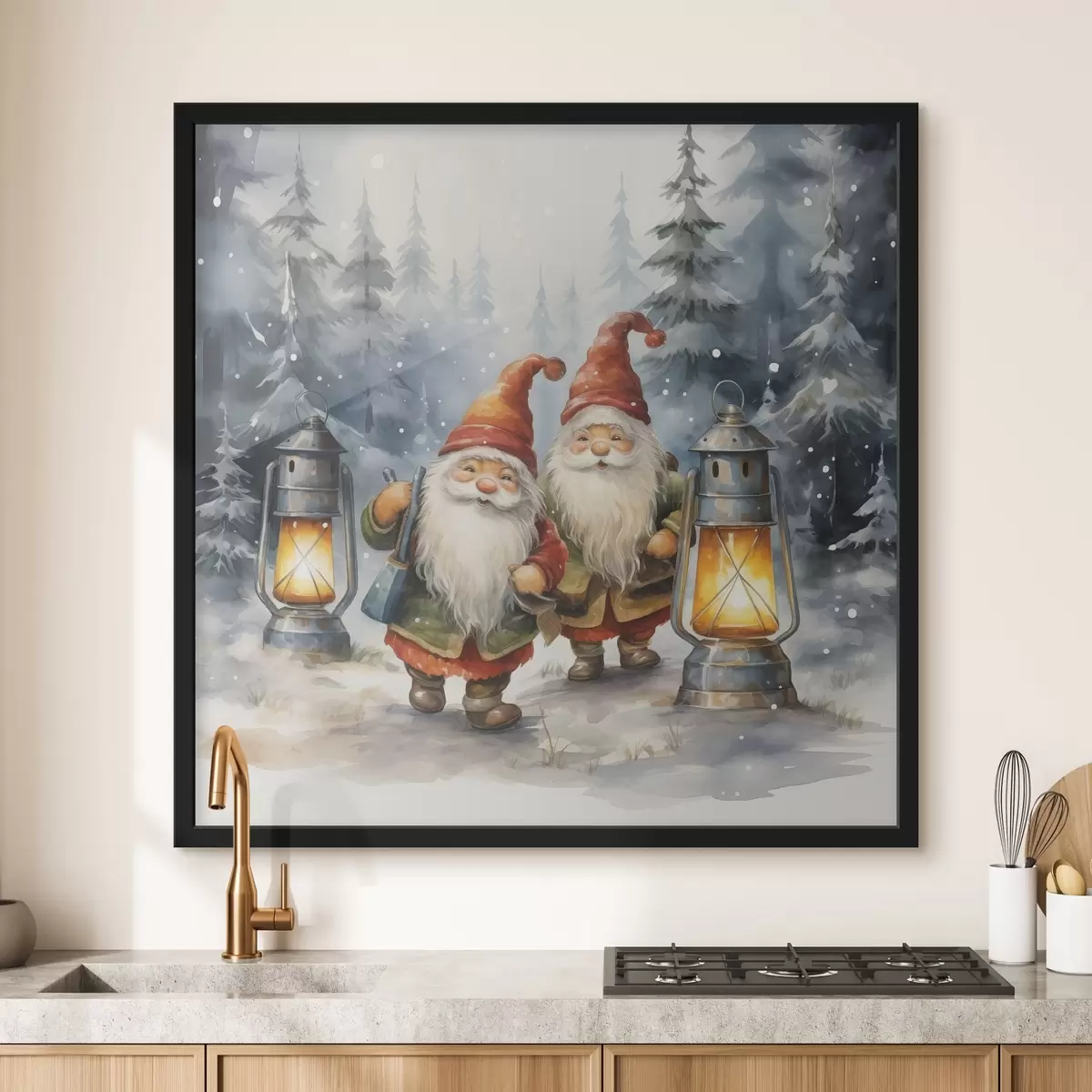 Poster Noworoczne skrzaty, imitacja akwareli Nr f46970