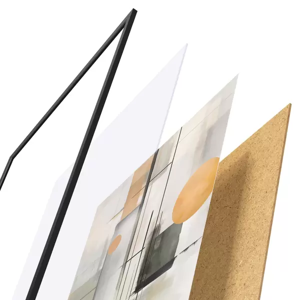 Plakat składa się z ramy, pleksi, wydrukowanego obrazu i podkładu z płyty wiórowej. Plakat można natychmiast zawiesić na ścianie dzięki uchwytom z tyłu.