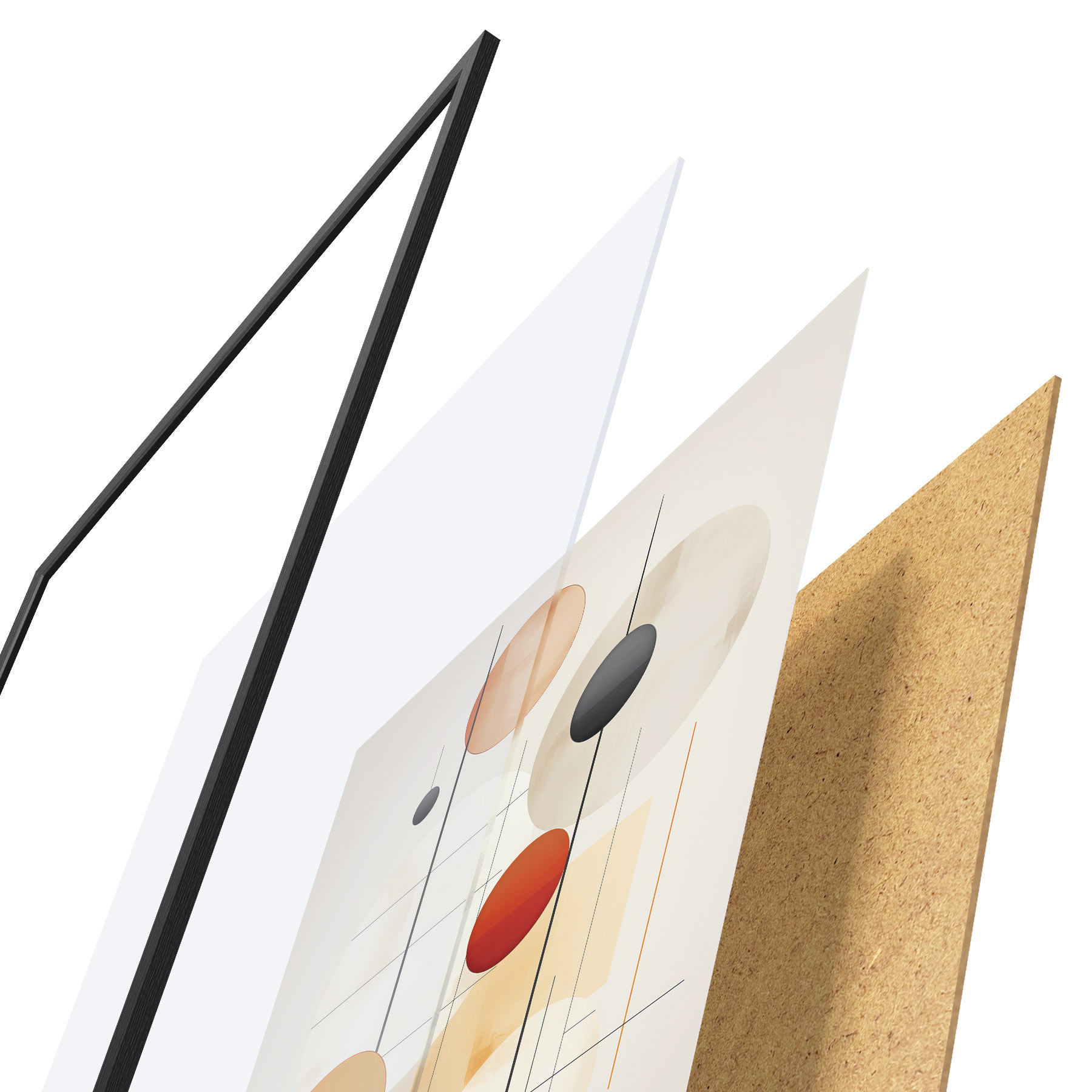 Plakat składa się z ramy, pleksi, wydrukowanego obrazu i podkładu z płyty wiórowej. Plakat można natychmiast zawiesić na ścianie dzięki uchwytom z tyłu.