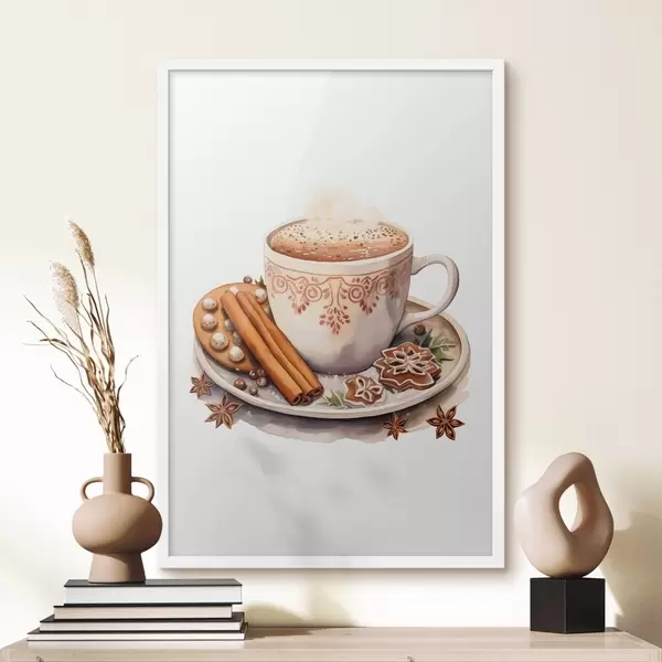 Plakat Rysunek imitujący akwarelę, kawa z cynamonem f46983