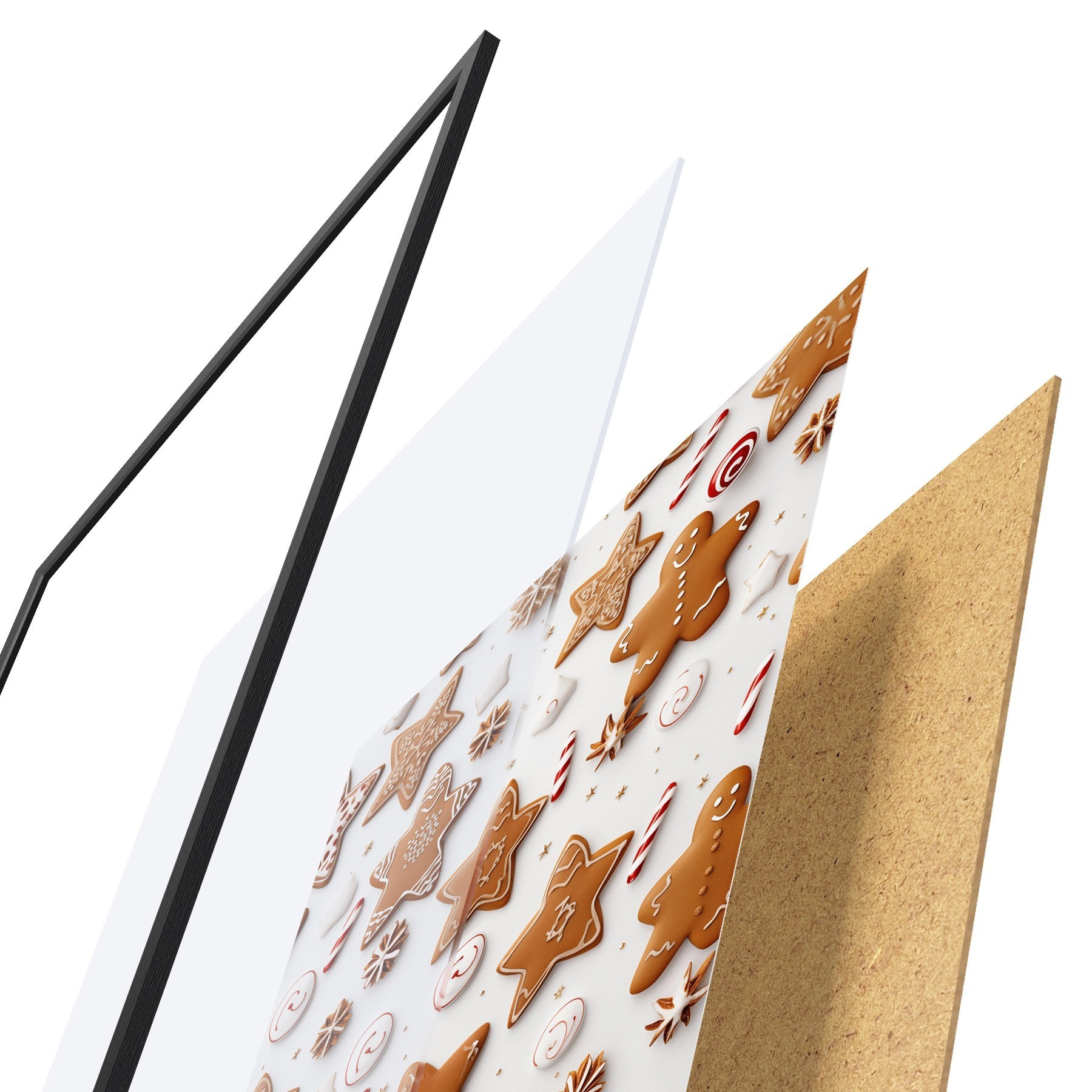 Plakat składa się z ramy, pleksi, wydrukowanego obrazu i podkładu z płyty wiórowej. Plakat można natychmiast zawiesić na ścianie dzięki uchwytom z tyłu.