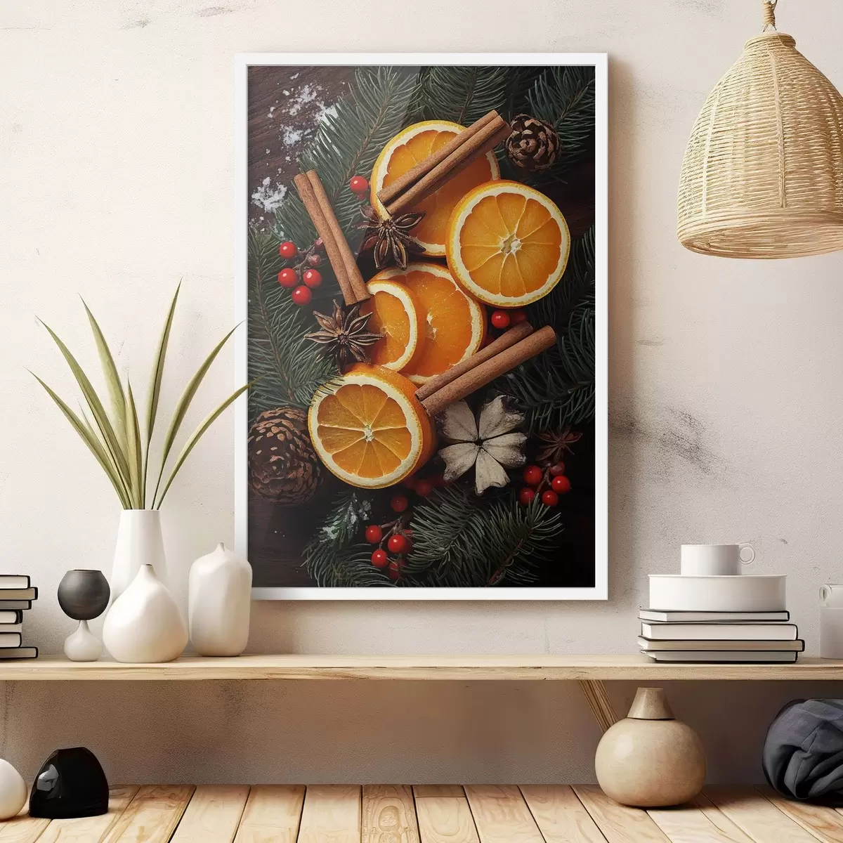 Plakat Rysunek owoców, pomarańczy i cynamonu f46986