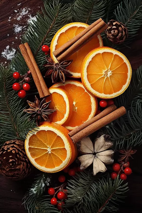 Plakat Rysunek owoców, pomarańczy i cynamonu f46986