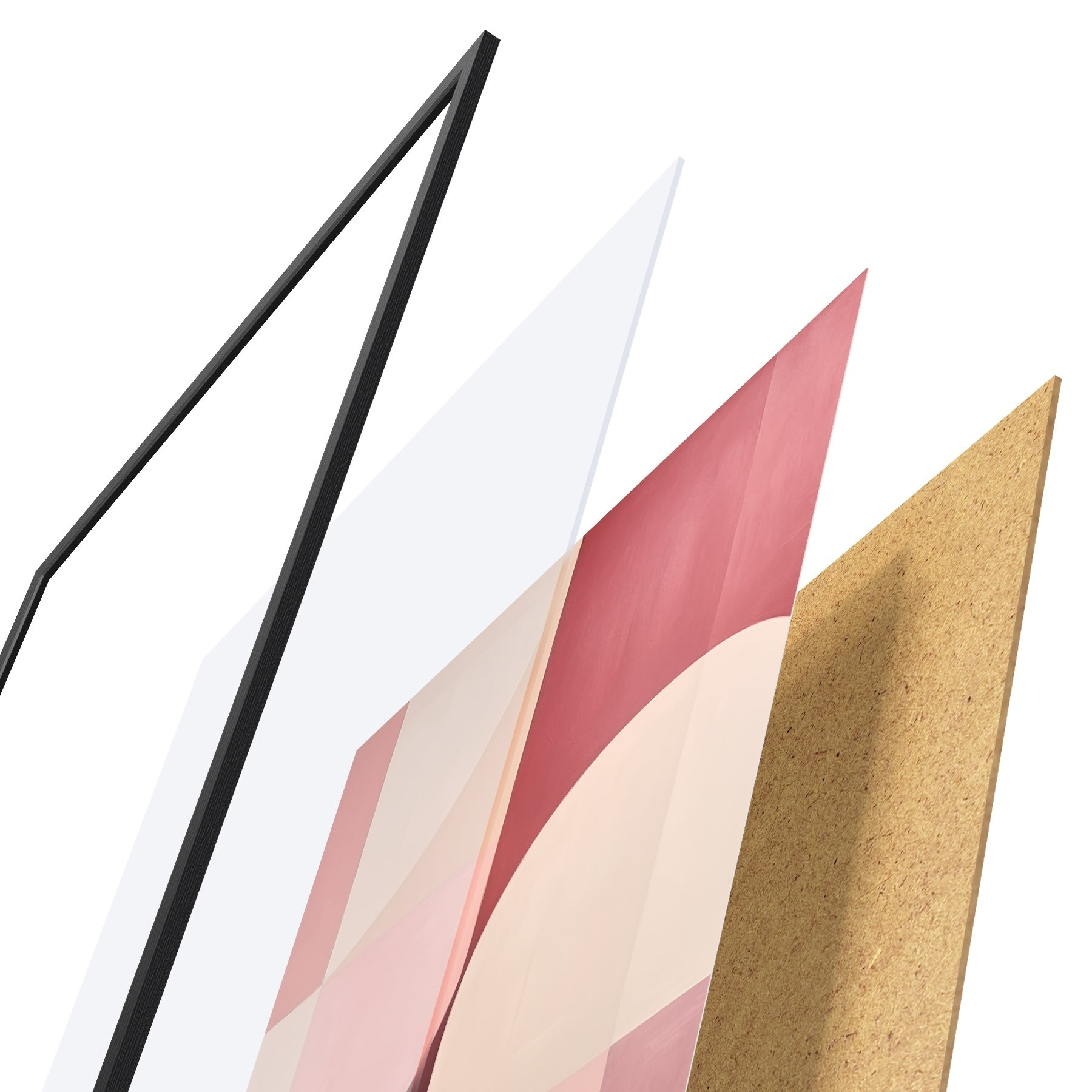 Plakat składa się z ramy, pleksi, wydrukowanego obrazu i podkładu z płyty wiórowej. Plakat można natychmiast zawiesić na ścianie dzięki uchwytom z tyłu.