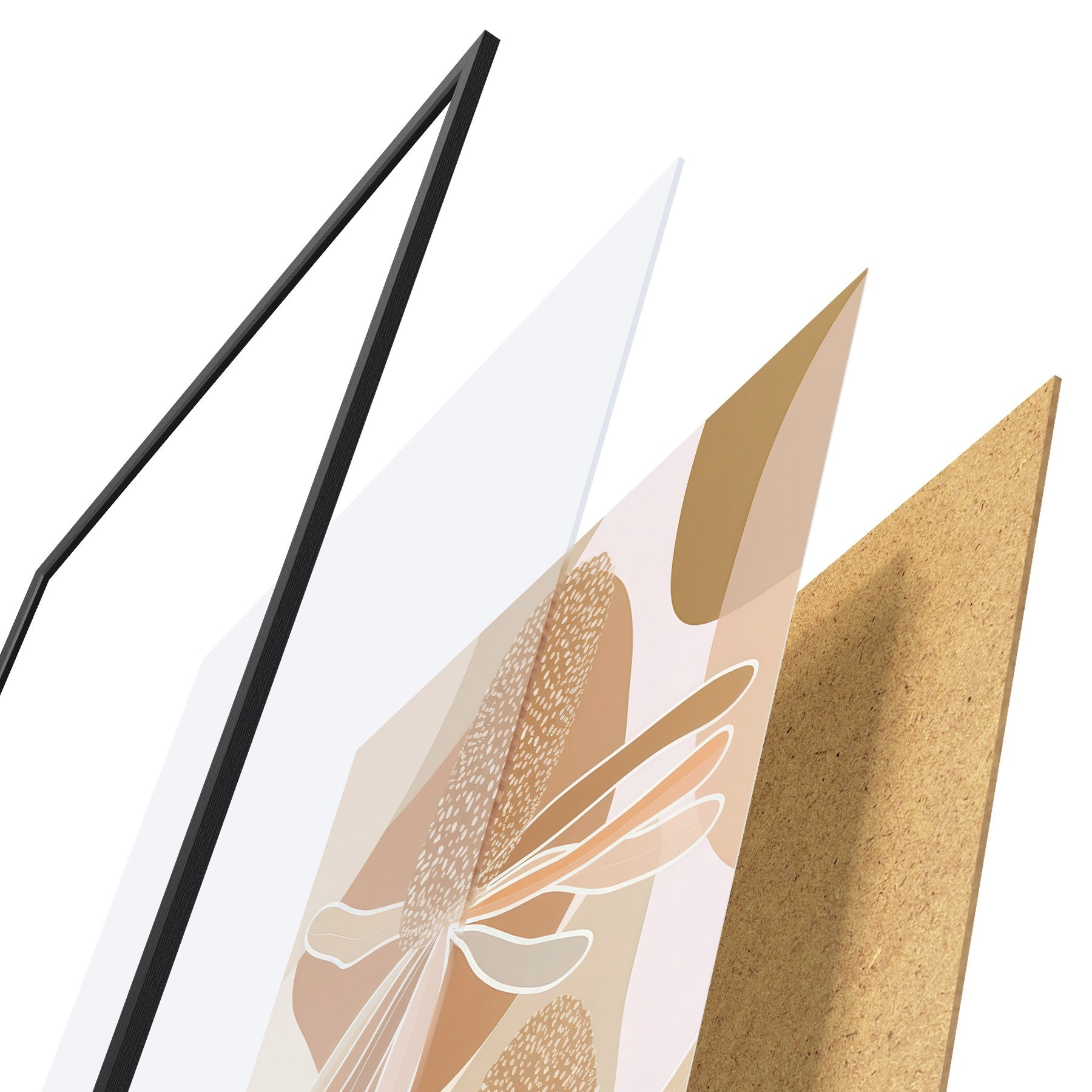 Plakat składa się z ramy, pleksi, wydrukowanego obrazu i podkładu z płyty wiórowej. Plakat można natychmiast zawiesić na ścianie dzięki uchwytom z tyłu.