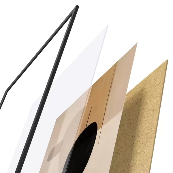 Plakat składa się z ramy, pleksi, wydrukowanego obrazu i podkładu z płyty wiórowej. Plakat można natychmiast zawiesić na ścianie dzięki uchwytom z tyłu.