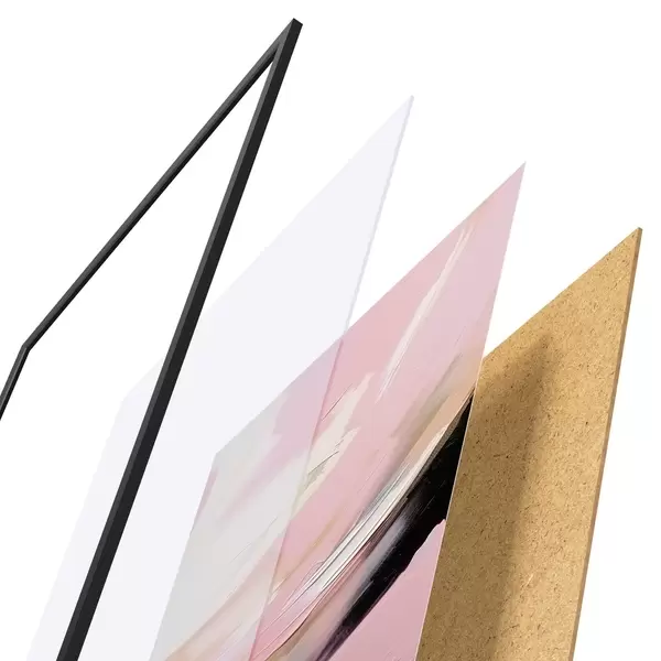 Plakat składa się z ramy, pleksi, wydrukowanego obrazu i podkładu z płyty wiórowej. Plakat można natychmiast zawiesić na ścianie dzięki uchwytom z tyłu.