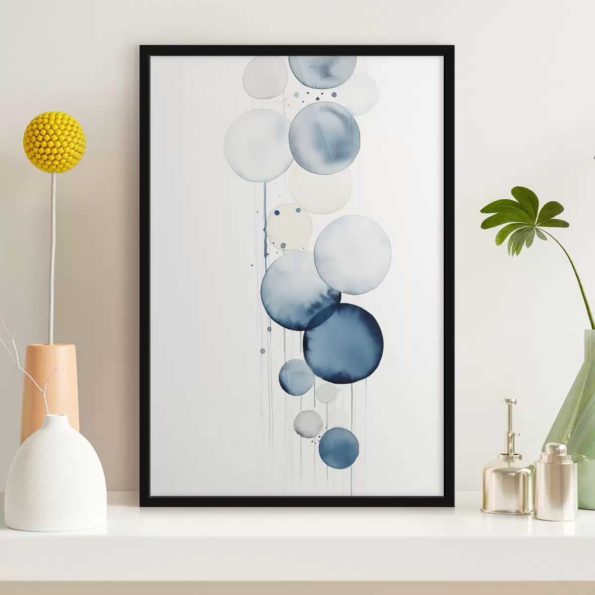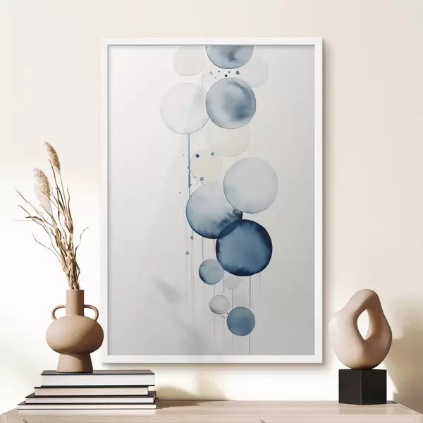 Plakat Abstrakcyjne, teksturowane niebiesko-białe koła o różnych rozmiarach, namalowane akwarelą na białym tle. f47020