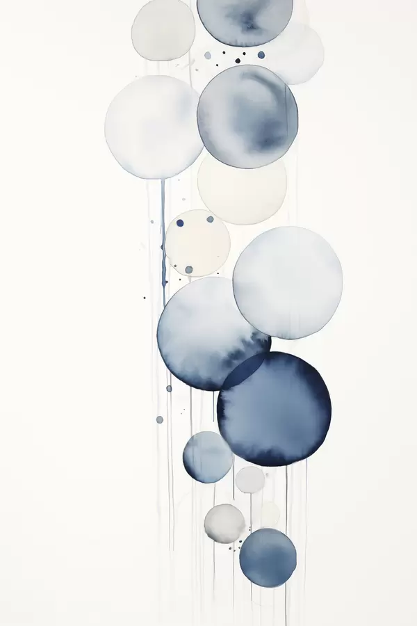 Plakat Abstrakcyjne, teksturowane niebiesko-białe koła o różnych rozmiarach, namalowane akwarelą na białym tle f47020