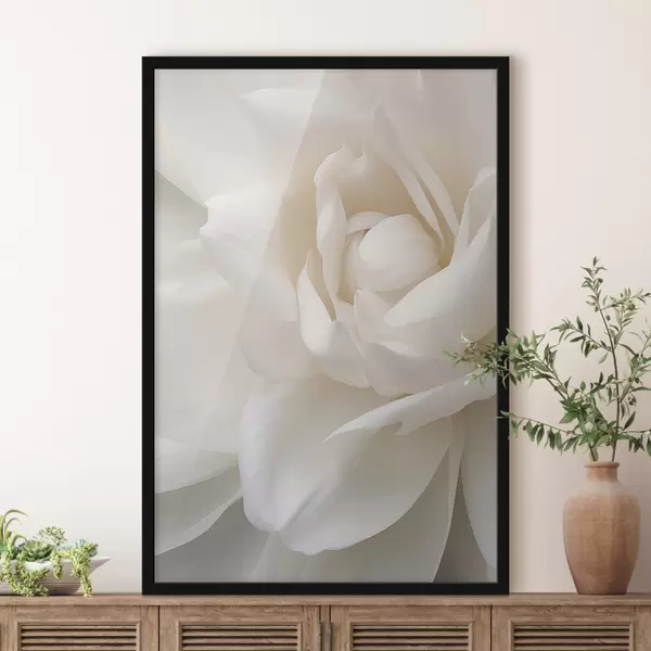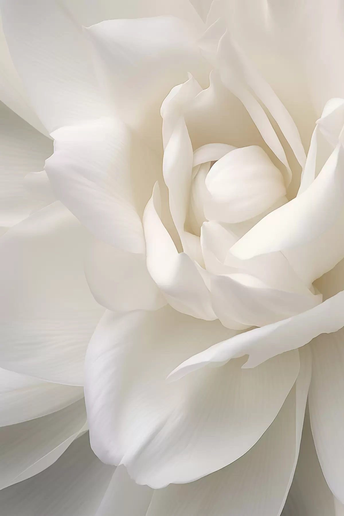 Poster Abstrakcyjny biały kwiat z delikatnymi, warstwowymi płatkami, minimalistyczna sztuka Nr f47025