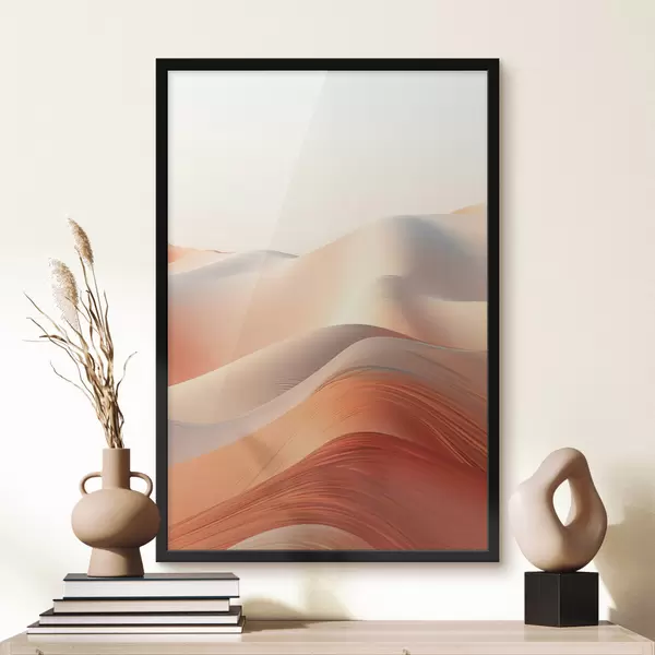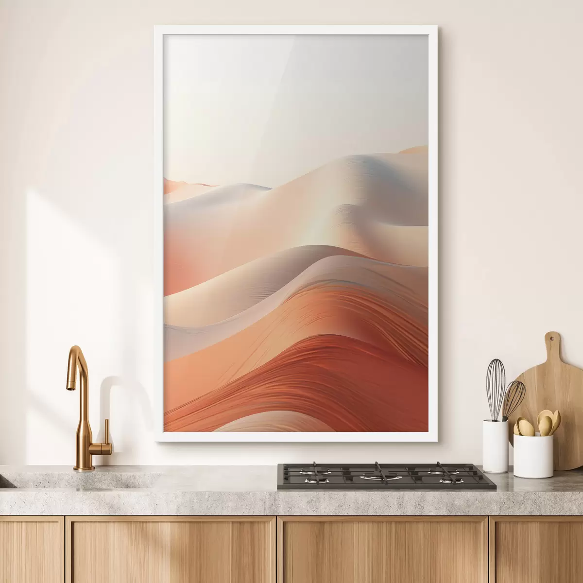 Plakat Abstrakcyjny krajobraz pustynny z płynącymi wydmami w ciepłych odcieniach pomarańczy i bieli. f47031