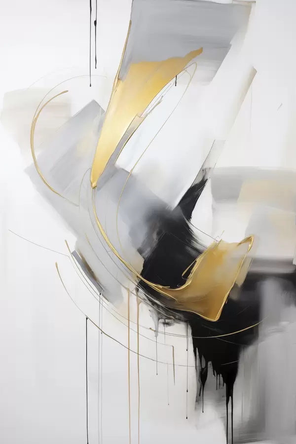 Poster Obraz abstrakcyjny z imitacją żółtych, czarnych i białych pociągnięć pędzla, dynamiczne linie Nr f47034