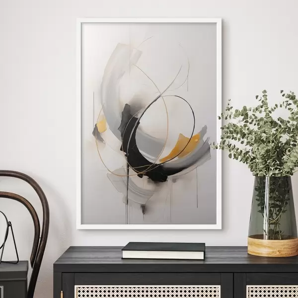 Poster Obraz abstrakcyjny z imitacją żółtych, czarnych i białych pociągnięć pędzla, dynamiczne linie Nr f47035