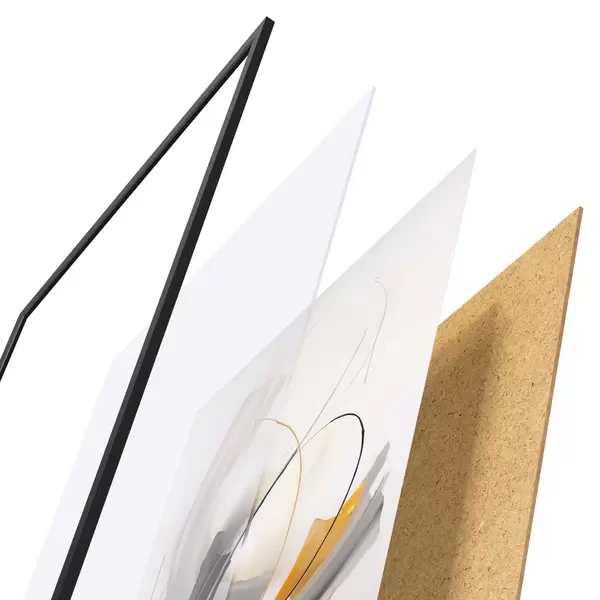 Plakat składa się z ramy, pleksi, wydrukowanego obrazu i podkładu z płyty wiórowej. Plakat można natychmiast zawiesić na ścianie dzięki uchwytom z tyłu.
