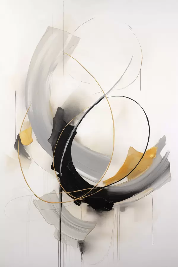 Poster Obraz abstrakcyjny z imitacją żółtych, czarnych i białych pociągnięć pędzla, dynamiczne linie Nr f47035
