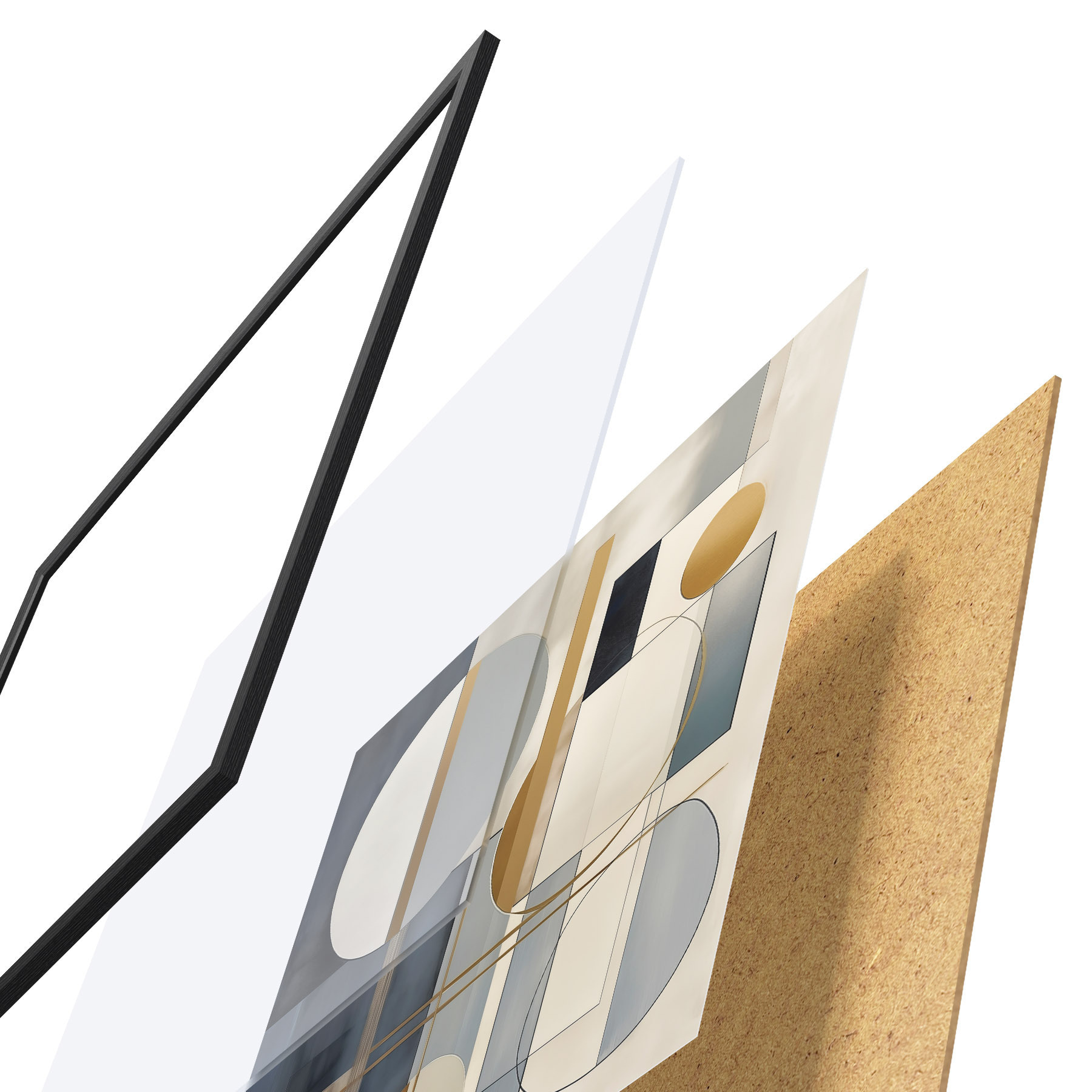Plakat składa się z ramy, pleksi, wydrukowanego obrazu i podkładu z płyty wiórowej. Plakat można natychmiast zawiesić na ścianie dzięki uchwytom z tyłu.
