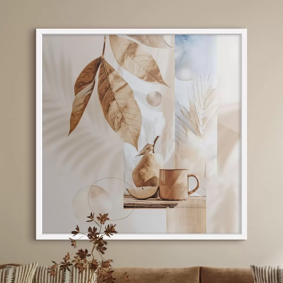 Plakat Abstrakcja z liśćmi, gruszką i filiżanką f47047