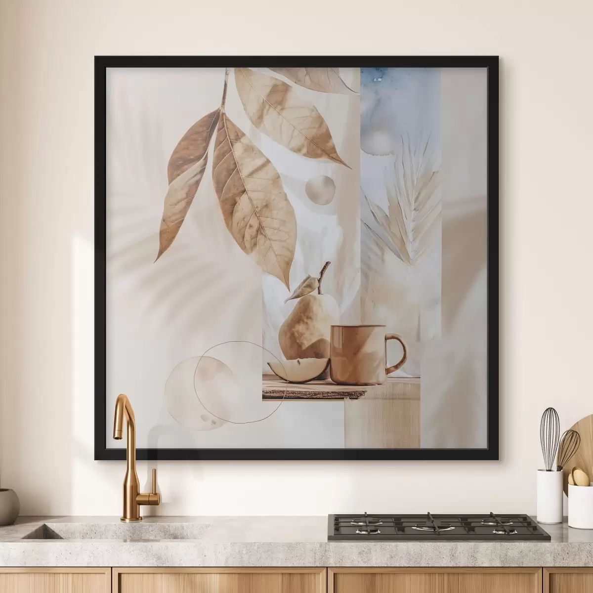 Poster Abstrakcja z liśćmi, gruszką i filiżanką Nr f47047